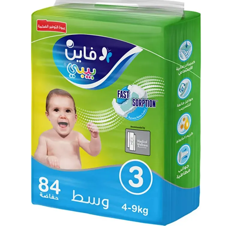 فاين بيبي | حفاضات اطفال 4-9كجم مقاس 3 | 84 قطعة